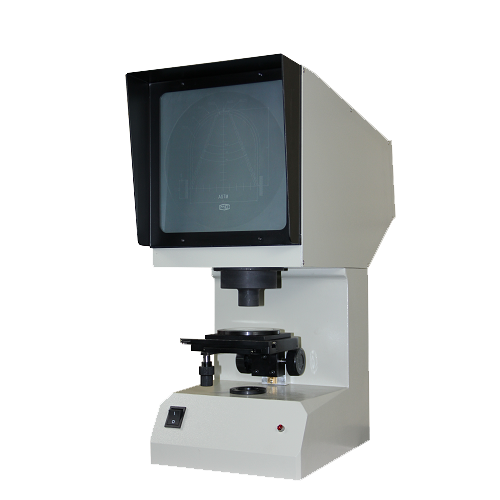 本投影儀光源發(fā)出的光線經(jīng)聚光鏡照射到被測物體,再經(jīng)物鏡將被照射物體放大的輪廓投射到投影屏上。根據(jù)需要,本儀器為單一投射照明,光源通過一系列光學(xué)元件投射在工作臺上,再通過一系列光學(xué)元件將被測試樣缺口輪廓清晰的投射到投影儀上。物體經(jīng)二次放大和二次反射成正像,在投影屏上所看到的圖形與實(shí)際試樣放置的方位一致。
